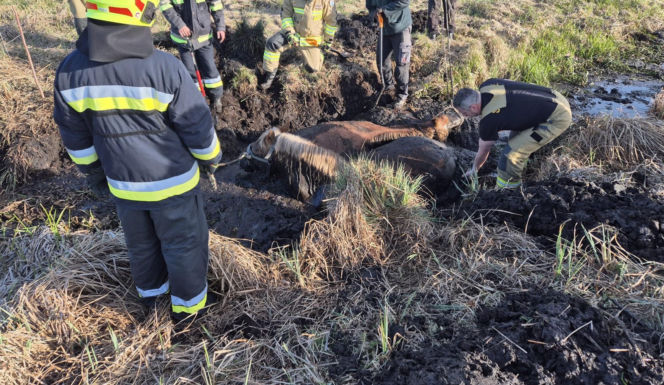 Konie uwięzione w bagnie