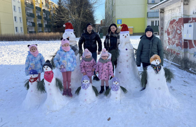 Rodzina bałwanów w Lublinie. Państwo Wrońscy zbudowali zimowy hit osiedla